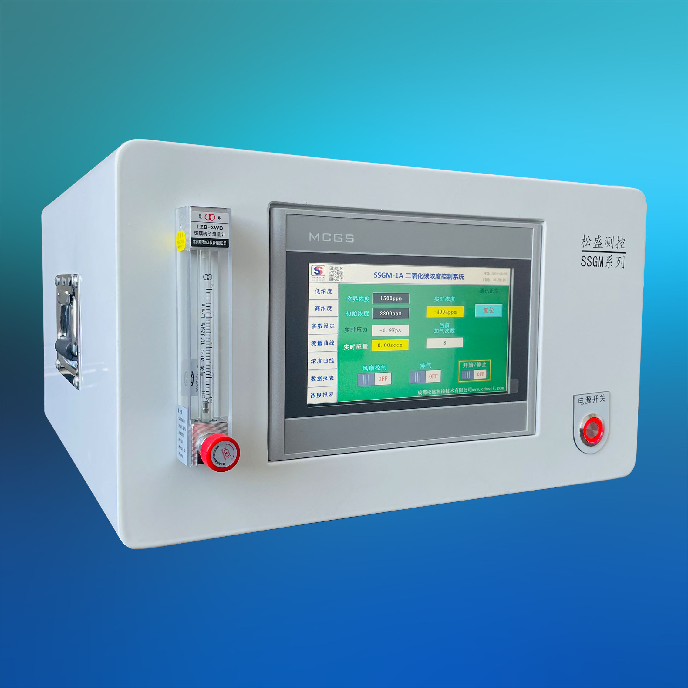 产品简介:混合气体浓度控制仪主要由减压阀、质量流量计、可编程控制器、浓度传感器等组成,主要是依靠二氧化碳质量流量计,进行气体流量的控制和检测,结合高精密的浓度传感器,让整个有机玻璃箱浓度能控制在设定值,产品的精度在±0.5%F.S以内。